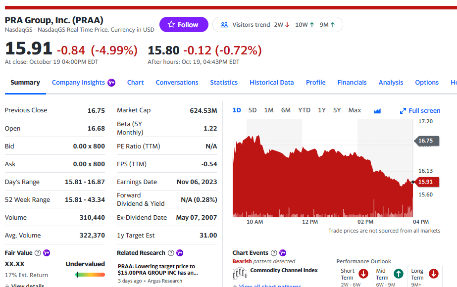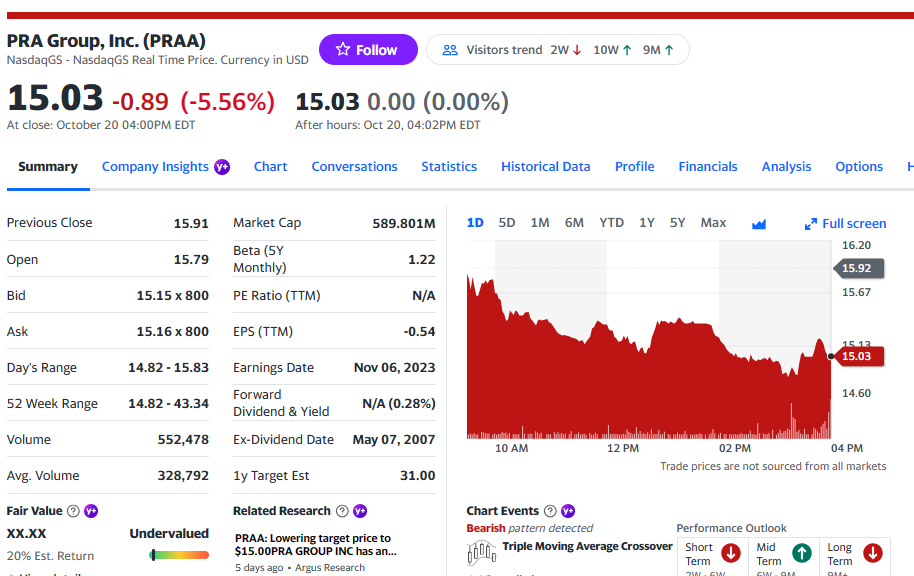 Now it seems like all my work is for naught. The execs at PRA Group, that pay themselves millions of dollars per year, might pack up whatever currency is laying around and leave the building in the dead of night, so to speak.