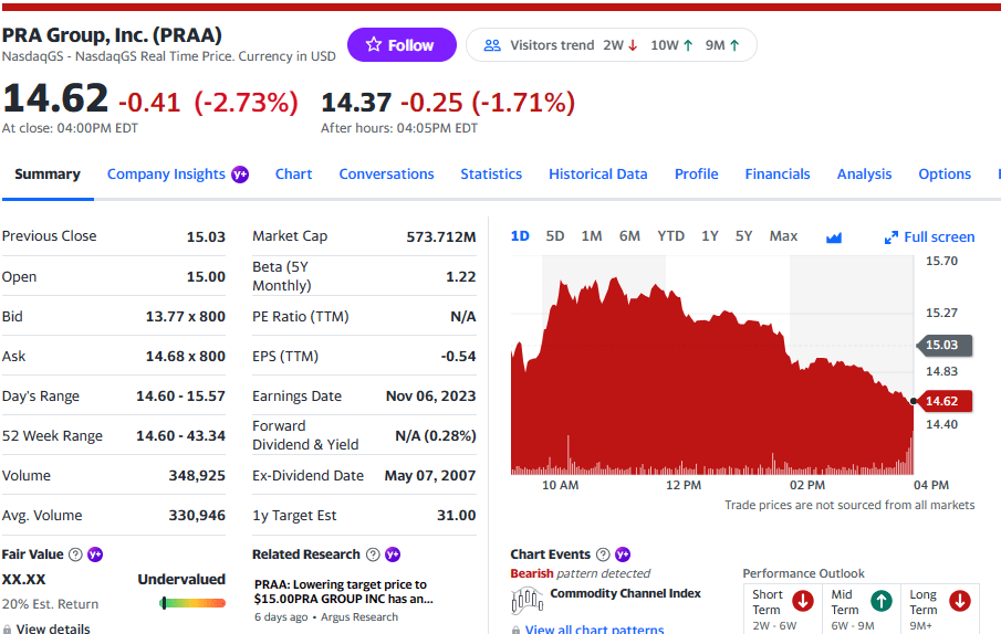 PRAA dropped below Argus’ target on Friday. There must be lots of people out there who agree with me about the value of the company.