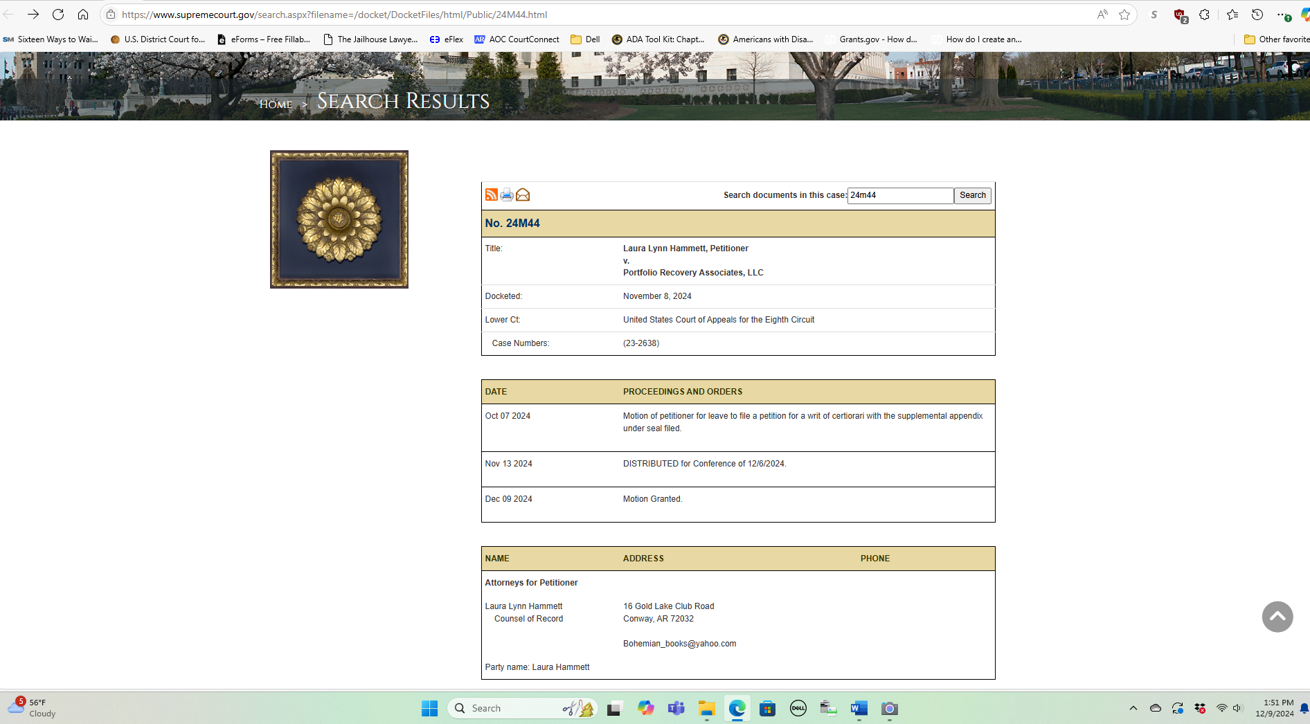 Pro Se Motion to SCOTUS Granted: UPDATE: Staff Member Told Me the Motion was Granted In Part